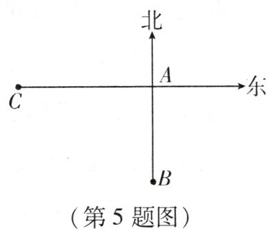 5. 小王与小林进行遥控赛车游戏,终点为点$A$,小王的赛车从点$C$出发,以$4m/s$的速度由西向东行驶,同时小林的赛车从点$B$出发,以$3m/s$的速度由南向北行驶(如图)。已知赛车之间的距离小于或等于$25m$时,遥控信号会产生相互干扰,$AC = 40m$,$AB = 30m$。出发$3s$时,遥控信号是否会相互干扰?