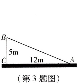 3. 如图,一根垂直于地面的旗杆在离地面$5m$处折断,旗杆顶部落在距旗杆底部$12m$处,旗杆折断之前的高度是(