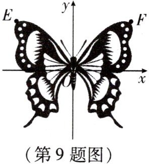 9. 剪纸艺术是中国最古老的民间艺术之一,很多剪纸作品体现了数学中的对称美。如图,蝴蝶剪纸是一幅轴对称图形,将其放在平面直角坐标系中,若 $ E(2m,n) $,其关于 $ y $ 轴对称的点 $ F $ 的坐标为 $ (-m + 1,4 - n) $,则 $ (m + n)^{2026} $ 的值为