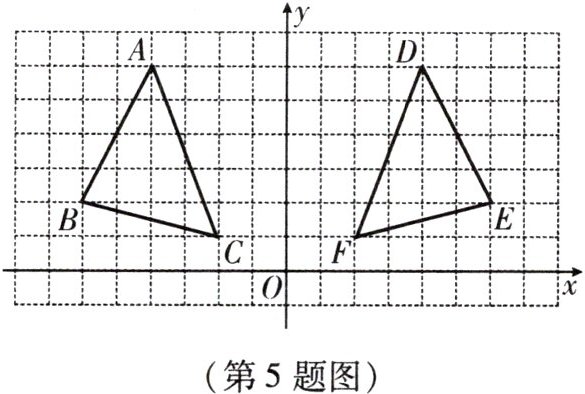 5. 如图,$ \triangle ABC $ 与 $ \triangle DEF $ 关于 $ y $ 轴对称,已知点 $ A(-4,6) $,$ B(-6,2) $,$ F(2,1) $,则点 $ C $ 的坐标为
