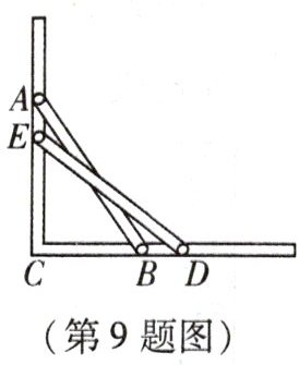 9. 如图,滑杆在机械槽内运动,$\angle ACB$为直角,已知滑杆$AB长2.5m$,顶点$A在AC$上运动,量得滑杆下端$B到C点的距离为1.5m$,当端点$B向右移动0.5m$时,求滑杆顶端$A$下滑多少米。