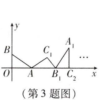 3. 如图,在平面直角坐标系中,将 $ \triangle ABO $ 沿 $ x $ 轴向右滚动到 $ \triangle AB_{1}C_{1} $ 的位置,再到 $ \triangle A_{1}B_{1}C_{2} $ 的位置 ……$ $ 依次进行下去,若已知点 $ A(4,0) $, $ B(0,3) $,则点 $ C_{100} $ 的坐标为 (