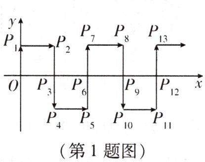 1. 如图,在平面直角坐标系中,一动点从原点 $ O $ 出发,沿着箭头所示方向,每次移动 $ 1 $ 个单位长度,依次得到点 $ P_{1}(0,1) $, $ P_{2}(1,1) $, $ P_{3}(1,0) $, $ P_{4}(1,-1) $, $ P_{5}(2,-1) $, $ P_{6}(2,0) $, …$ $,则点 $ P_{2026} $ 的坐标是 (