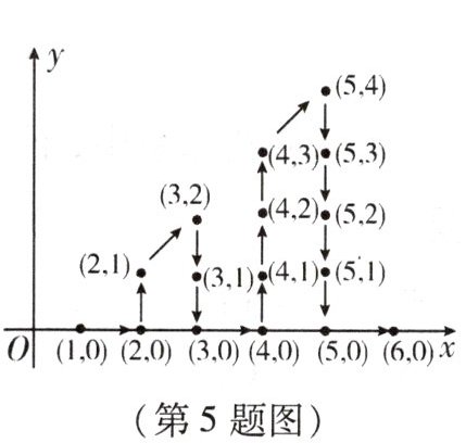 5. 在平面直角坐标系中,有若干个整数点,其顺序按如图中“$ \to $”方向排列,如 $ (1,0) $; $ (2,0) $, $ (2,1) $; $ (3,2) $, $ (3,1) $, $ (3,0) $; $ (4,0) $, …$ $,根据这个规律探索可得,第 $ 30 $ 个点的坐标为 (