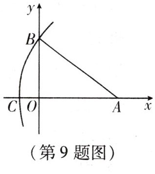 9. 如图,$A(8,0)$,$C(-2,0)$,以点$A$为圆心,$AC$长为半径画弧,交$y轴正半轴于点B$,则点$B$的坐标为(
