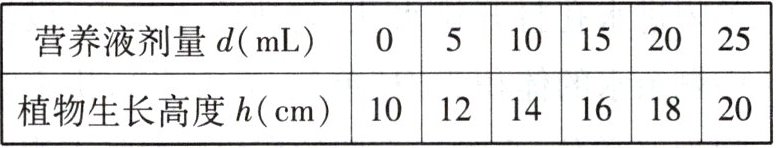 4. 在某新型智能农场中,植物生长的高度h(单位:cm)与所施加的特殊营养液的剂量d(单位:mL)的关系如下表: