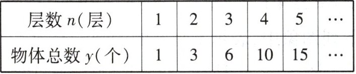 D.物体总数y与层数n之间的关系式为y = $\frac{n(n + 1)}{2}$