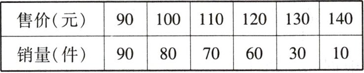 1. 汉服作为传统文化的一种载体,近年来愿意了解、喜爱汉服的人越来越多. 据了解,在某一阶段,某汉服的销量与售价之间存在下表所示的关系,已知该商品的成本为85元,则下列说法正确的是(