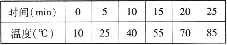 (2)由表格可知,时间每增加$5min$,温度增加$15^{\circ}C$,则温度随时间的变化是均匀的,每分钟温度增加$3^{\circ}C$。