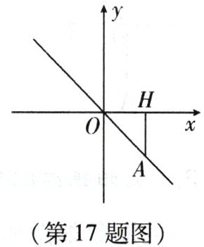 17. 如图,已知正比例函数 $ y = kx $ 的图象经过点 $ A $,点 $ A $ 在第四象限,过点 $ A $ 作 $ AH \perp x $ 轴,垂足为点 $ H $,点 $ A $ 的横坐标为 $ 3 $,且 $ \triangle AOH $ 的面积为 $ 3 $.