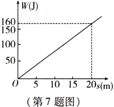 7. 某物体在力 $ F $ 的作用下,沿力的方向移动的距离为 $ s $,力对物体所做的功 $ W $ 与 $ s $ 的对应关系如图所示,则下列结论正确的是(