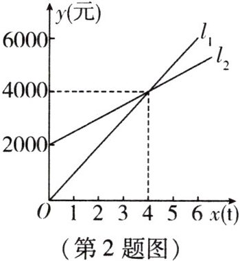 2. 如图,$l_{1}$反映了某产品的销售收入(单位:元)与销售量(单位:t)之间的关系,$l_{2}$反映了该产品的销售成本(单位:元)与销售量(单位:t)之间的关系,当销售收入大于销售成本时,该产品才开始盈利. 下列说法不正确的是 (