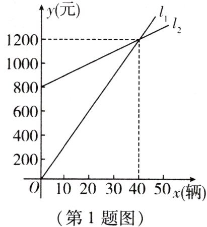 1. 某电动车销售公司每月付给销售人员的工资有两种方案. 方案 1:没有底薪,只付销售提成;方案 2:底薪加销售提成. 如图中的射线$l_{1}$、射线$l_{2}$分别表示该电动车销售公司每月按方案 1、方案 2 付给销售人员的工资$y_{1}元y_{2}元与其当月电动车销售量x辆(x≥0)$的函数关系.
