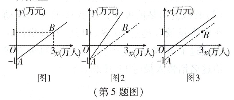 5. (锦州期末)某公共汽车线路收支差额$y$(单位:万元)(票价总收入减去运营成本)与乘客数量$x$(单位:万人)之间的函数图象如图 1 所示.