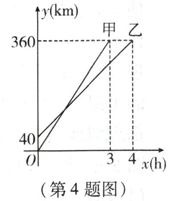 4. 甲、乙两车分别从$A,B两地去同一城市C$,他们离$A地的路程y$(单位:km)随时间$x$(单位:h)变化的图象如图所示,根据图象解答下列问题:
