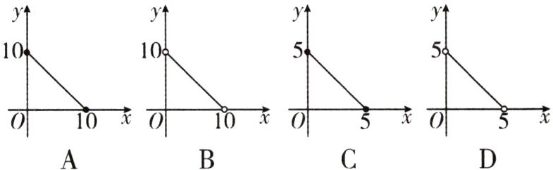 4. 已知长方形的周长是 10,长 y 是宽 x 的函数,则下列图象中,能正确反映 y 与 x 之间的函数关系的图象是(
