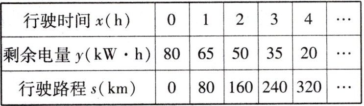 这辆新能源汽车电池的剩余电量 y(单位:$kW·h$)与行驶时间 x(单位:h),行驶路程 s(单位:km)与行驶时间 x(单位:h)之间满足不同的一次函数关系.