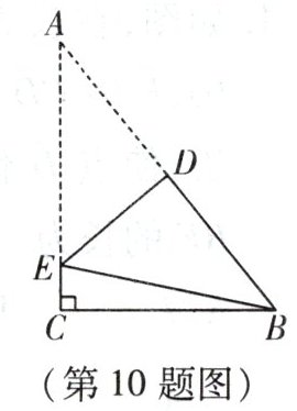 10. 如图,在 $\mathrm{Rt}\triangle ABC$ 中,$\angle C = 90^{\circ}$,把 $\triangle ABC$ 沿直线 $DE$ 折叠,点 $A$ 与点 $B$ 重合。