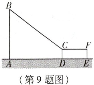 9. 如图是某“飞越丛林”俱乐部打造的一款儿童游戏项目,工作人员告诉小敏,该项目 $AB$ 段和 $BC$ 段均由不锈钢管材打造,总长度为 $26\mathrm{m}$,长方形 $CDEF$ 为一木质平台的截面图。小敏经过现场测量得知 $CD = 1\mathrm{m}$,$AD = 15\mathrm{m}$,于是小敏大胆猜想立柱 $AB$ 段的长为 $10\mathrm{m}$,请判断小敏的猜想是否正确。如果正确,请写出理由;如果不正确,请求出立柱 $AB$ 段的正确长度。