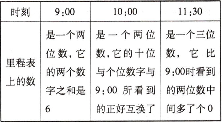 9.(沈阳苏家屯区校级期末)爸爸骑摩托车带着小明在公路上匀速行驶,小明每隔一段时间看到的里程表上的数如下表: