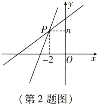 2. 如图,一次函数$y = \frac{3}{4}x + \frac{9}{2}的图象与y = kx + b的图象相交于点P(-2,n)$,则关于$x,y的方程组\begin{cases}3x - 4y + 18 = 0,\\kx - y + b = 0\end{cases} $的解是(