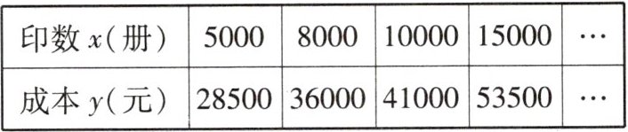 8. 某出版社出版一种适合中学生阅读的科普读物,当该读物首次出版印刷的印数不少于 $ 5000 $ 册时,投入的成本 $ y $(元)与印数 $ x $(册)之间的相应数据如下表: