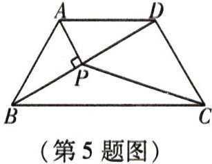 5. 如图,社区公园内有一梯形广场 $ABCD$,计划在广场内部空地一点 $P$ 处安装一个监控摄像探头,可以时刻监控广场内的情况,并将广场分为四个三角形的监控区域. 为了节约成本,给监控供电的电线 $AP$ 与 $BP$ 之间始终保持相互垂直,已知 $AD// BC$,$AB = CD = 100m$,$\angle ABC = 60^{\circ}$,$BC = 200m$. 请问广场内是否存在一个符合要求的点 $P$,使得 $\triangle PCD$ 的面积最小? 若存在,请找出此时点 $P$ 的位置;若不存在,请说明理由. (注:当 $a = b$ 时,能使得 $ab$ 在已知 $a^{2}+b^{2}$ 为定值的条件下取得最大值)