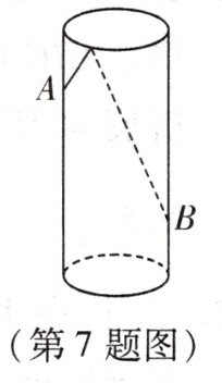7. 如图,透明的圆柱形容器(容器厚度忽略不计)的高为12cm,底面周长为10cm. 在容器内壁离容器底部3cm的点B处有一饭粒,此时一只蚂蚁正好在容器外壁,且离容器上沿3cm的点A处,则蚂蚁吃到饭粒需爬行的最短距离是