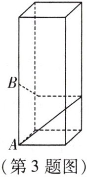 3. 如图,长方体的底面邻边长分别是5cm和7cm,高为20cm,如果用一根细线从点A开始经过4个侧面缠绕一圈到达点B(B为棱的中点),那么所用细线最短为 (