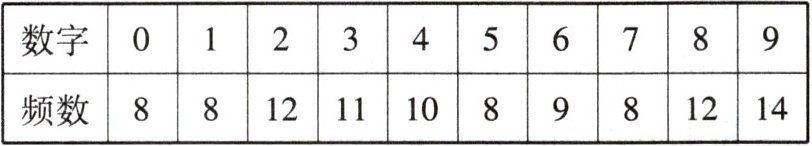 1. (新考法·数学文化)祖冲之是中国数学史上伟大的数学家,他把圆周率精确到小数点后7位,这是祖冲之最重要的数学贡献.数学活动课上,同学们把圆周率的小数点后100位数字统计成下表: