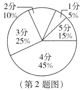 2. 如图所示的扇形统计图描述了某校学生对课后延时服务的打分情况(满分5分),则所打分数的众数为(