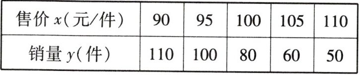 5. 某商场为了解A产品的销售情况,随机抽取了A产品5天的销售记录,其售价x(元/件)与对应销量y(件)的全部数据如下表: