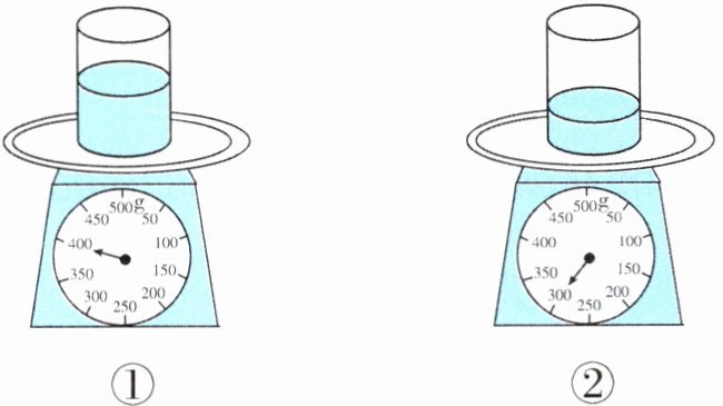 5. 一杯果汁,连杯称质量如图①所示,喝了一半果汁后,连杯称质量如图②所示。这杯果汁的净含量是(