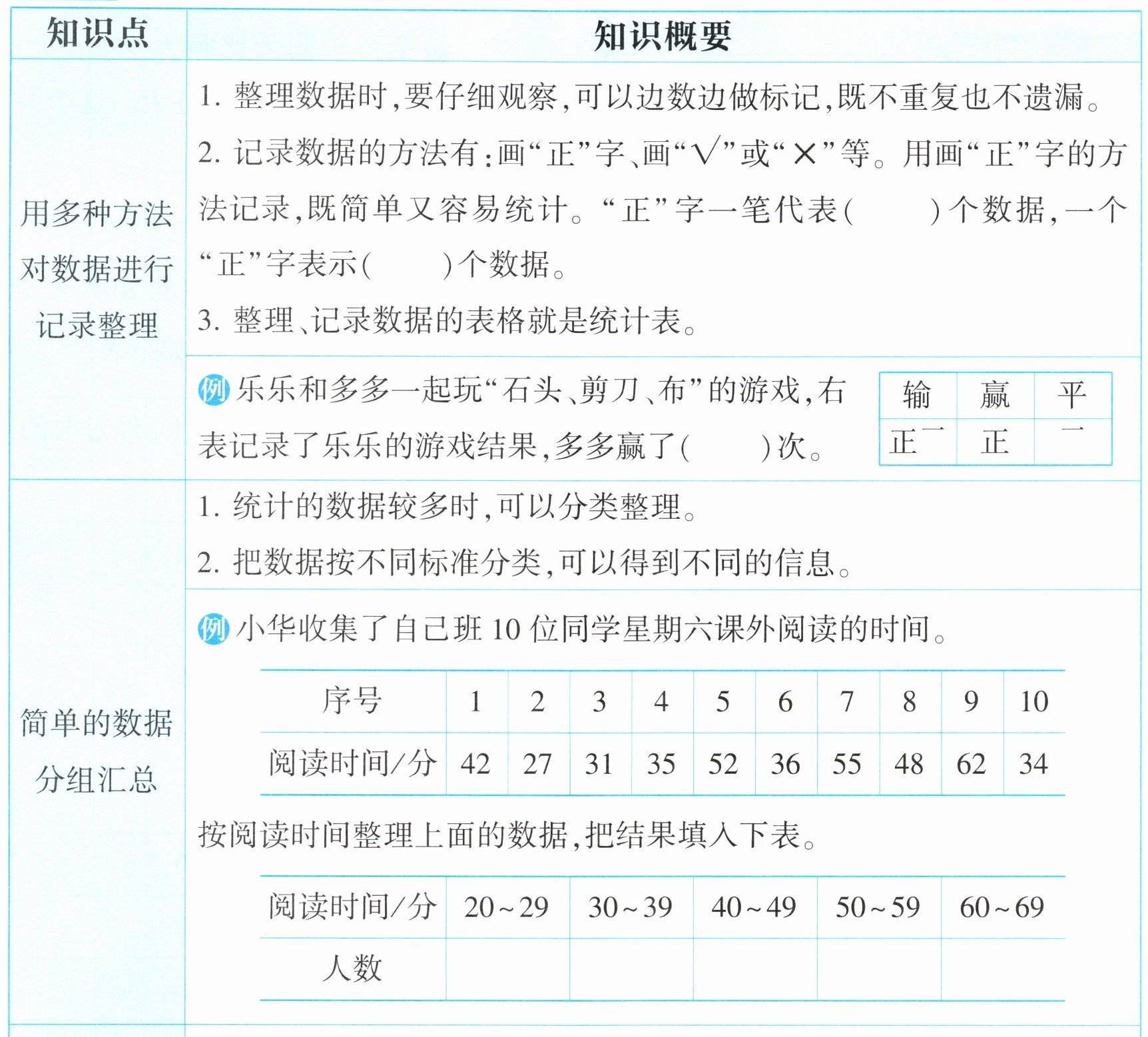 第三单元 知识清单 用多种方法对数据进行记录整理 2.1 5 例 6 简单的数据分组汇总 例 1 4 2 2 1
