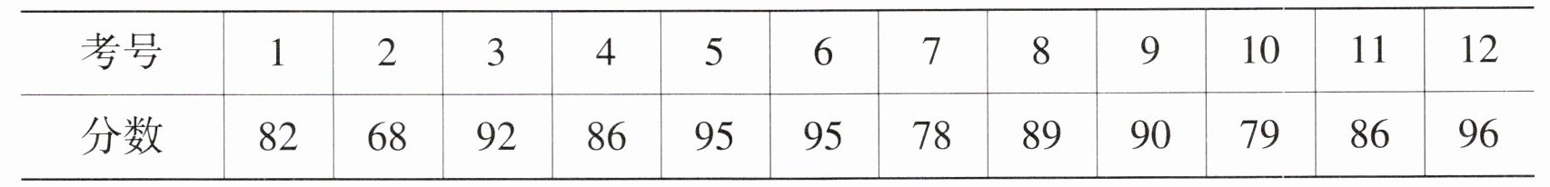 三年级 12 名同学参加学校阅读知识竞赛,下面是他们的竞赛成绩。