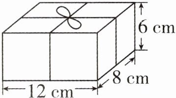 7. 下面是一个长方体礼品盒,小丁用彩带把这个盒子包扎了一下(如图),打结处用了6厘米。那么至少要用多少厘米的彩带?