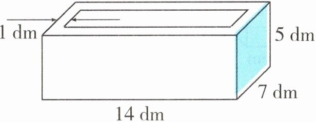 5. 用混凝土浇筑一个无盖的长方体水槽,从外面量长14分米、宽7分米、高5分米,混凝土厚1分米。