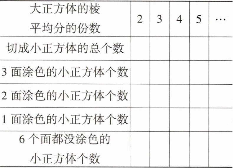 2. 把一个表面涂色的正方体的每条棱长平均分成6份,再切成同样大的小正方体,在切成的小正方体中: