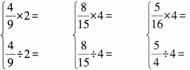 结果相等 当$a=2$时,$\frac{1}{5}÷2=\frac{1}{5}×\frac{1}{2}=\frac{1}{10}$;$\frac{1}{2}÷5=\frac{1}{2}×\frac{1}{5}=\frac{1}{10}$。可见$\frac{1}{5}÷2=\frac{1}{2}÷5$。(举例不唯一)