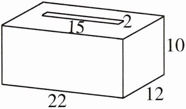 3. 如图是一个木质长方体纸巾盒,在它的上面有一个长方形开口,制作一个这样的纸巾盒需要多少平方厘米的木板?(单位:厘米)