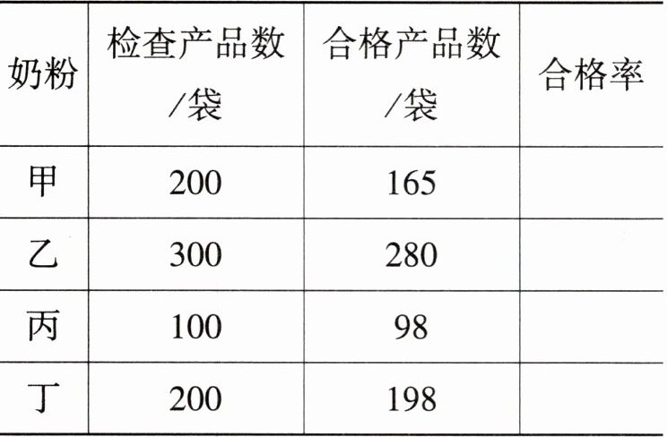 )的合格率最高。(2)合格率高的奶粉,合格产品数就一定多吗? 为什么?