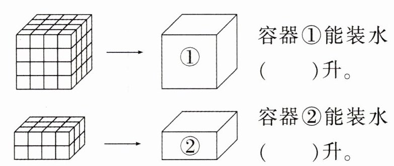 (1) 用体积是1立方分米的正方体木块摆成的正方体或长方体正好能装满各自右边的容器。