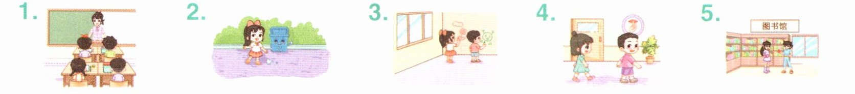 1. should stand 2. shouldn't litter 3. shouldn't draw 4. should be quiet 5. shouldn't eat