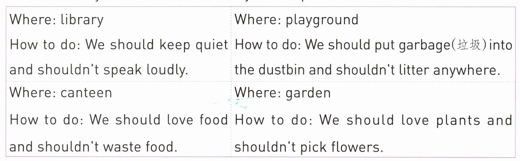 play games, but don't climb trees. In the classroom, we don't 4. talk