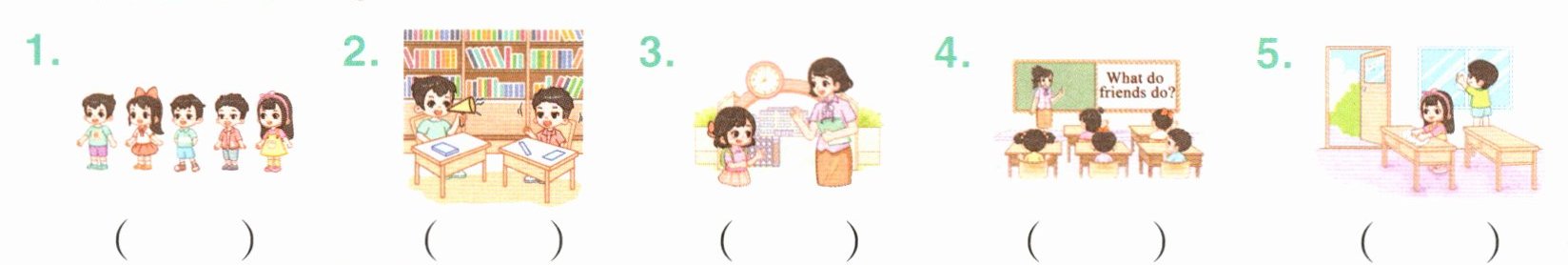 1. read 2. quiet 3. talk 4. wait 5. help