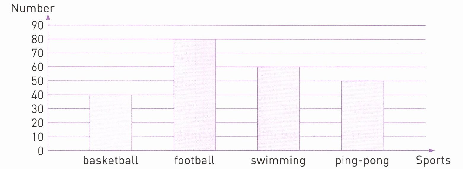 Ms De 统计学生们喜欢的运动。根据图表信息,判断句子正(T)误(F)。