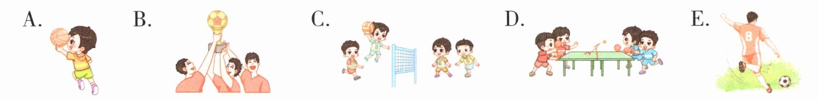 三 体育场门口的宣传栏上有很多照片。给下列句子选择相应的照片。