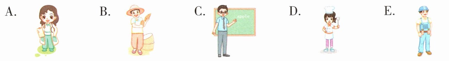 二、参加表演的同学们穿上了喜欢的职业服装。给下列句子选择与之相符的图片。
