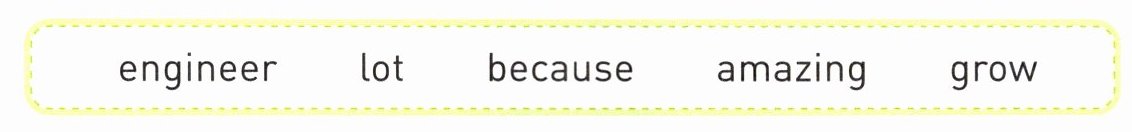 1. amazing 2. engineer 3. because 4. lot 5. grow