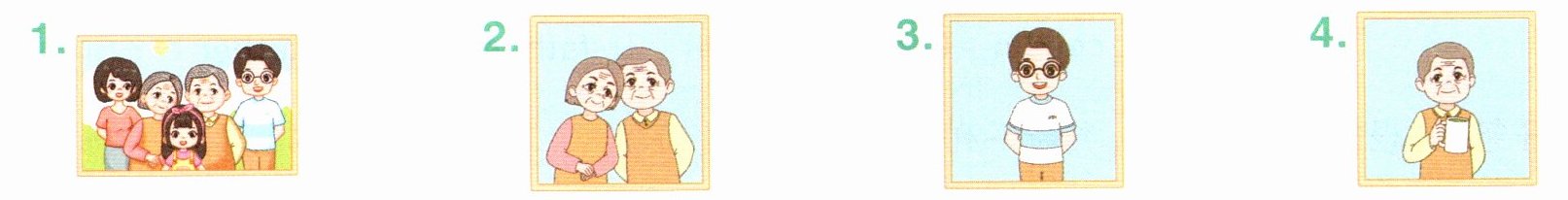 四、Mengmeng 正在向同学们展示家庭照片,请你帮 Mengmeng 回答同学们的问题。